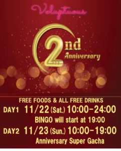 Sunday, November 23rd, 10:00 AM – 7:00 PMAnniversary Super Gacha Event!! No Losing Tickets